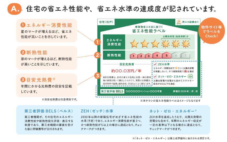 新築住宅の購入を考えている場合は、2024 年 4 月から住宅の販売・賃貸広告に、「省エネ性能ラベル」が表示されているため省エネや断熱のレベルを確認することができます。