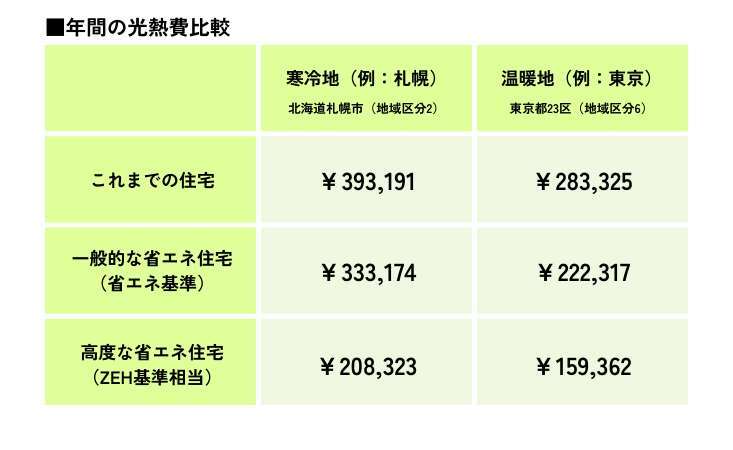 省エネ住宅で節約できる年間の光熱費(戸建て住宅)
