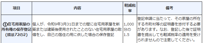 出典:国税庁「土地の売買や住宅用家屋の所有権の保存登記等に係る登録免許税の税率の軽減措置に関するお知らせ 」