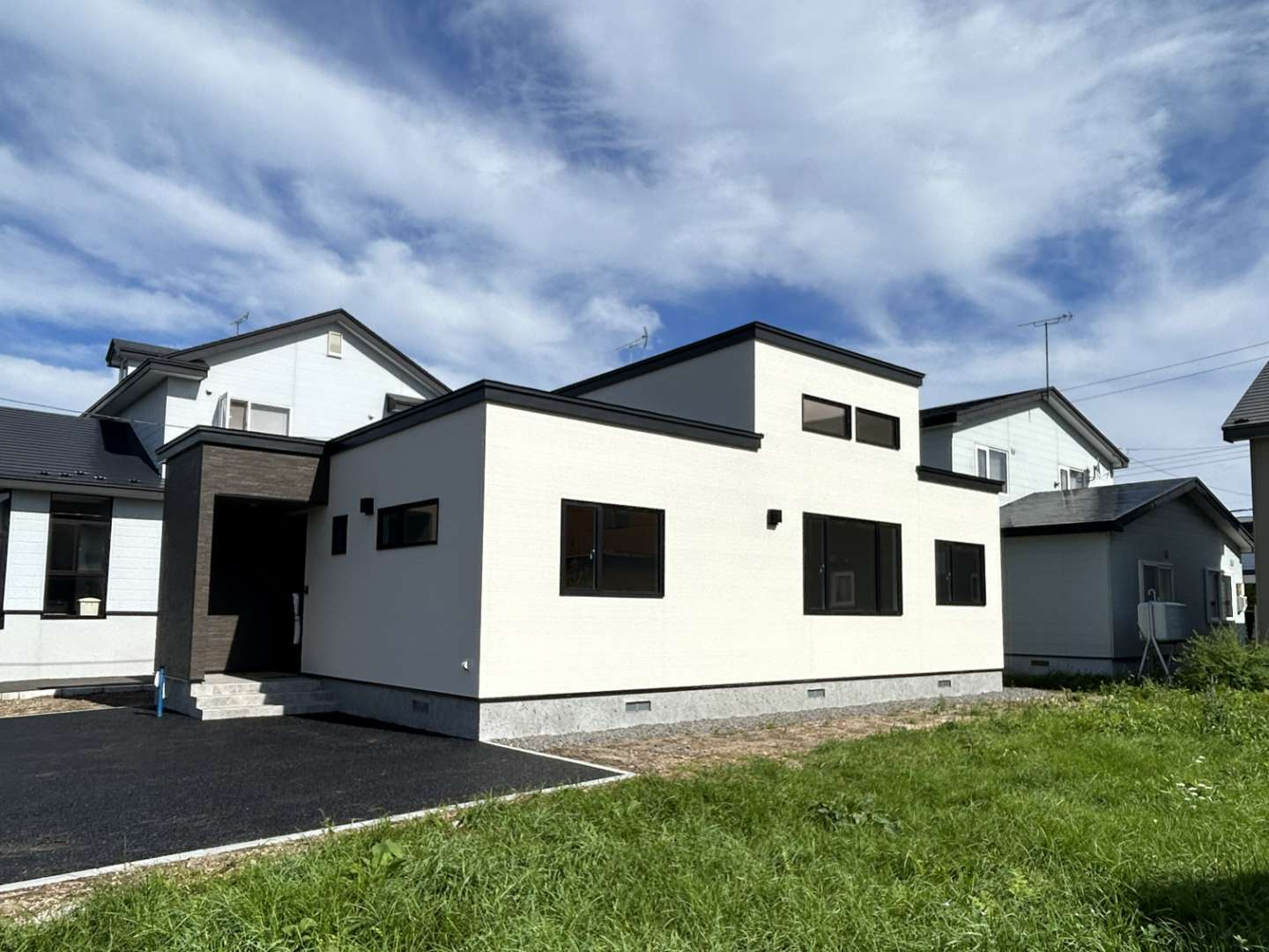 シンプルながらも洗練されたデザインで、周囲の景観や自然との調和を重視した外観です。