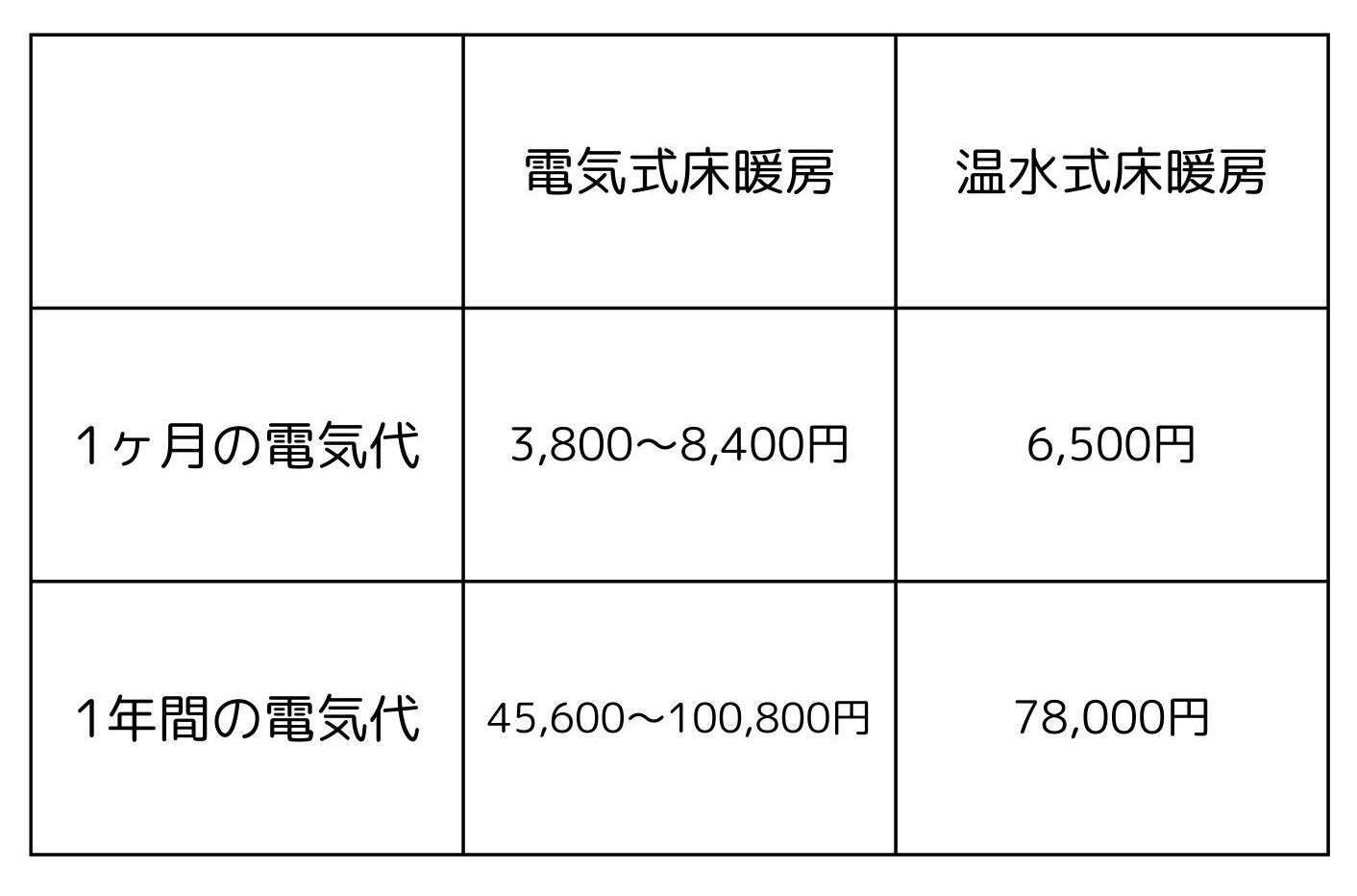 電気式と温水式のそれぞれの床暖房のランニングコストを具体例で紹介します。