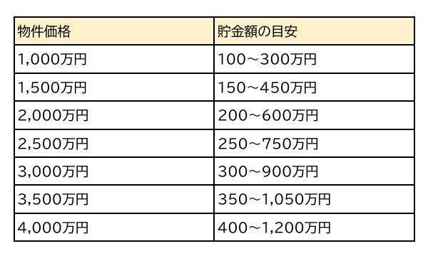 マイホーム購入に必要な貯金額の目安を、物件価格ごとに比較してみましょう。
