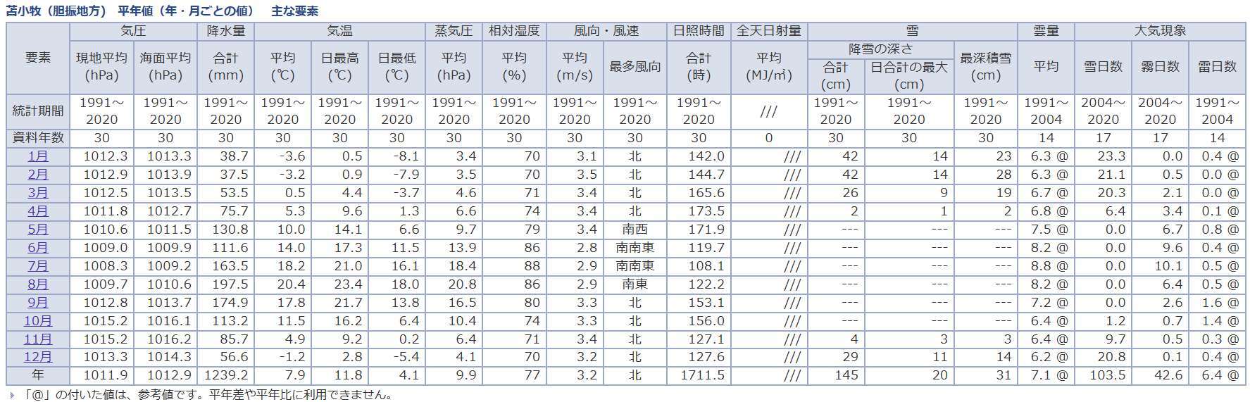 出典:気象庁「苫小牧(胆振地方) 平年値(年・月ごとの値)」