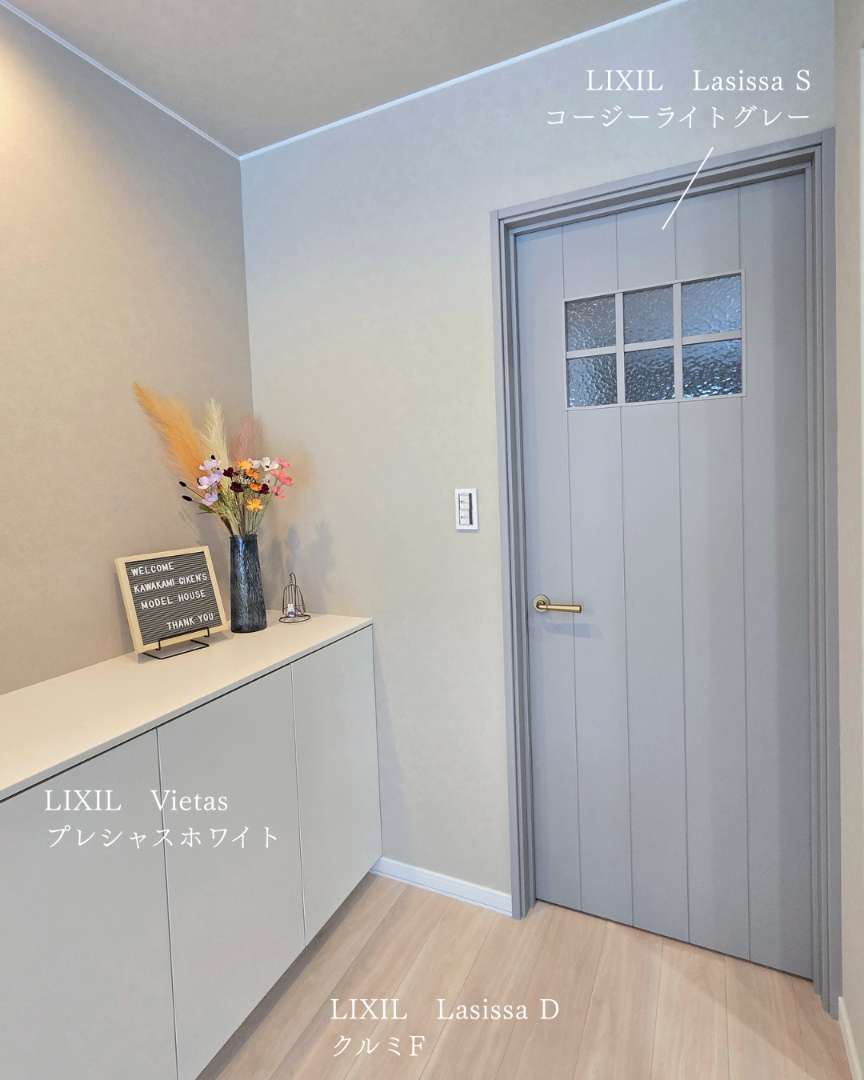 そこに合わせた室内ドアは同じくLIXILのラシッサS コージーライトグレー