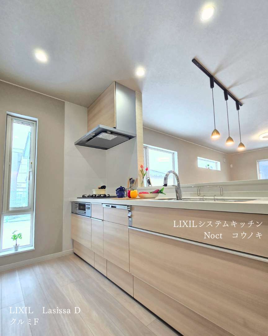 システムキッチンはLIXILのノクトカラーはコウノキを採用